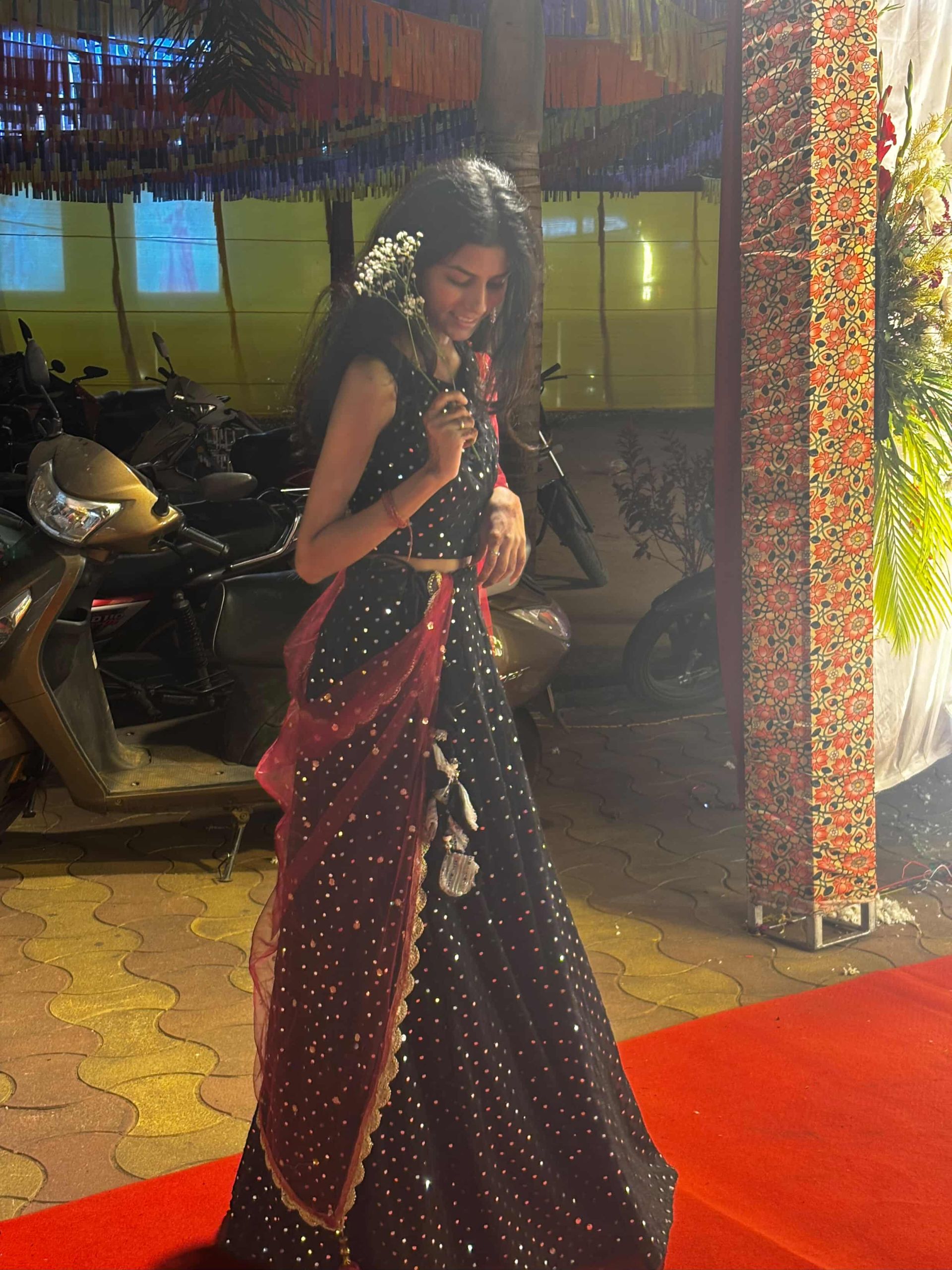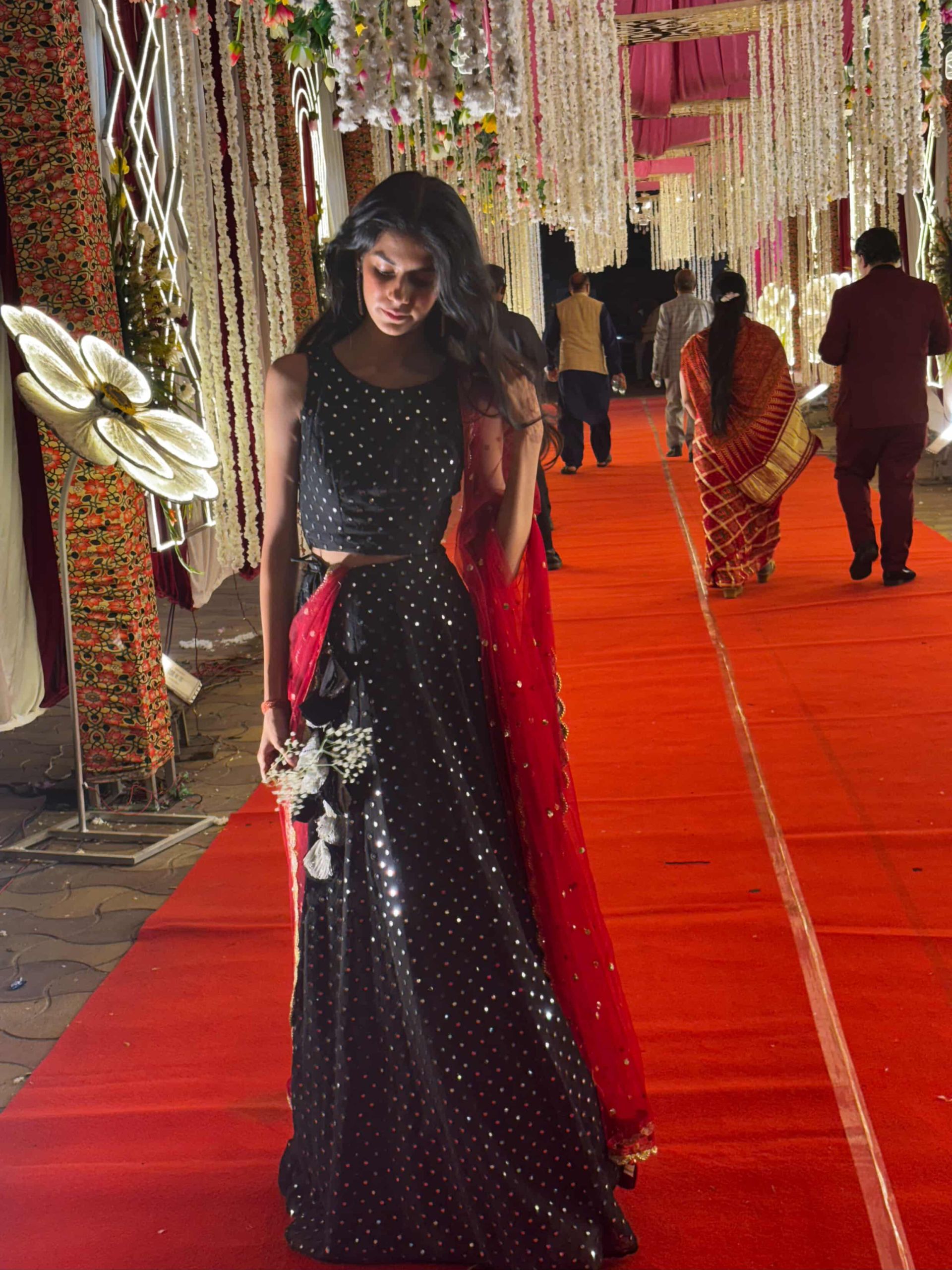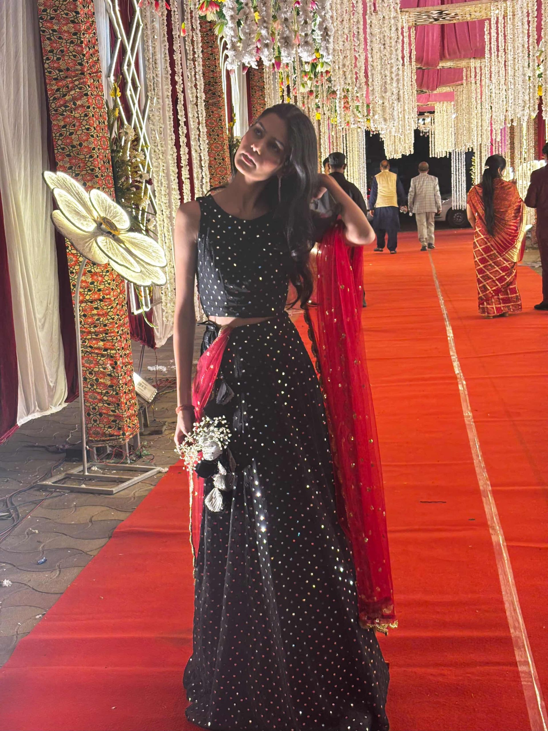 There’s something undeniably powerful about a black ensemble, and when Neha Sharma approached us to design a piece for her friend’s wedding, we knew we had to create something that balanced modern edge with traditional grace.