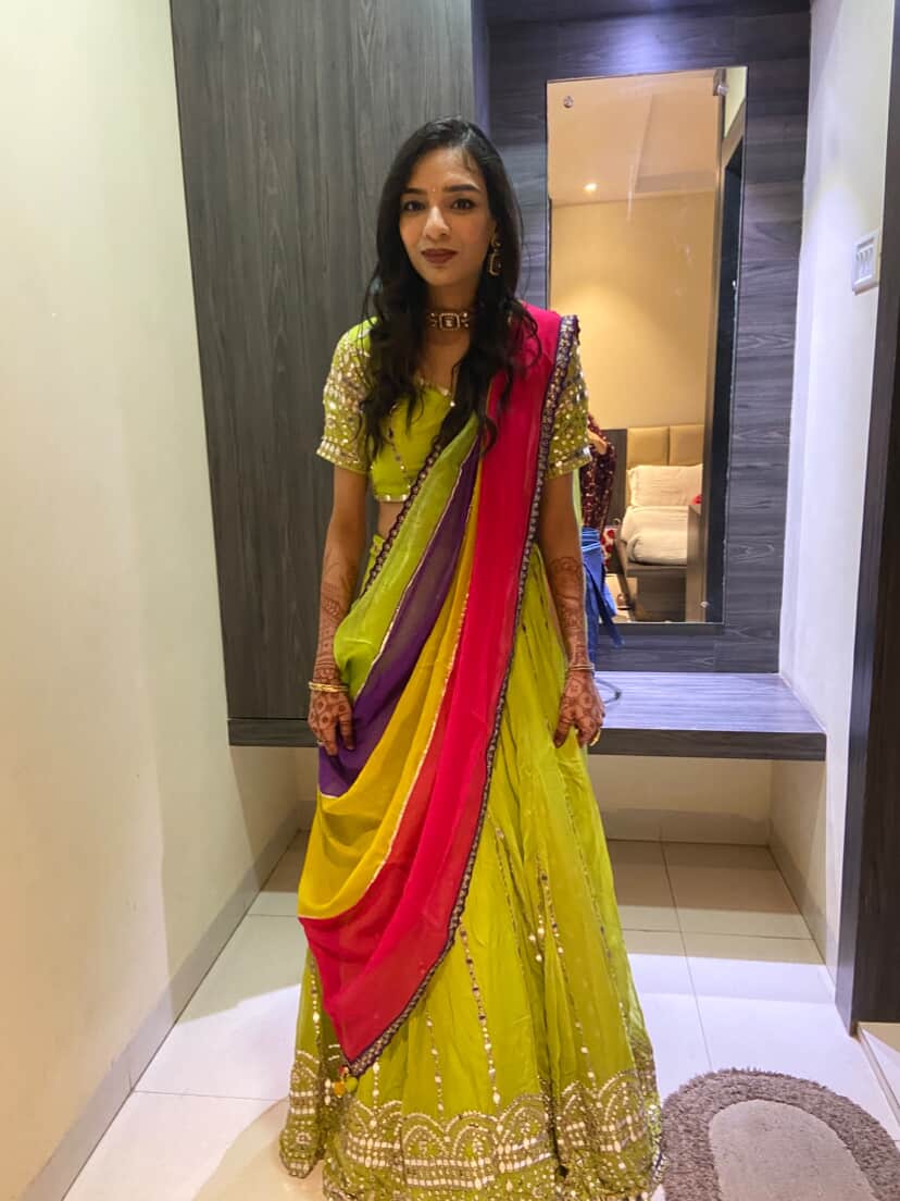 Electric Elegance: Priyal’s Custom Neon Pre-Wedding Lehenga