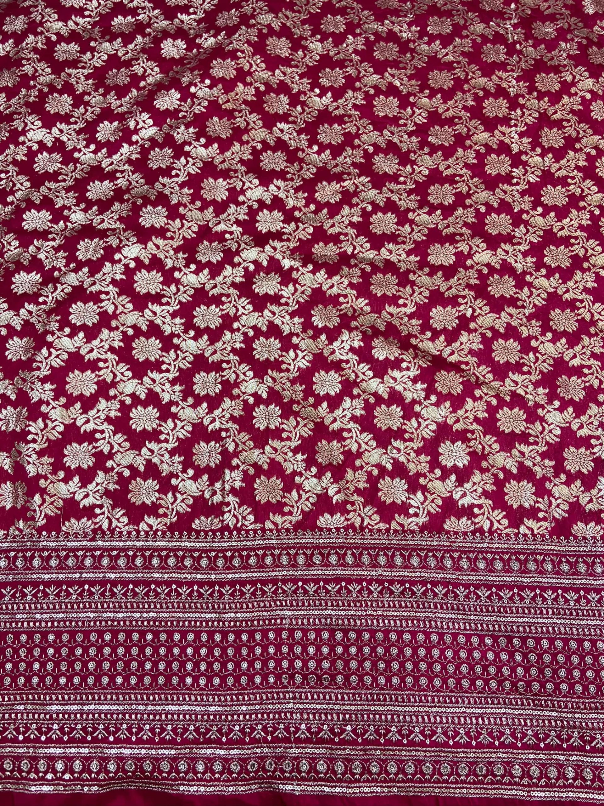 The beauty of this set lies in its minimalist sophistication. By letting the rich texture of the Dola silk speak for itself, we’ve created a look that is purely about the silhouette and the glow of the fabric. The crop blouse sits with a gentle elegance, while the skirt features a magnificent five-meter flare that moves with a heavy, rhythmic grace. Each step you take creates a beautiful wave of silk, grounded by a subtle lustre that doesn’t need heavy work to be noticed. Paired with a weightless net dupatta, the look gains a touch of ethereal drama, perfect for a grand Sangeet or a starlit Reception.