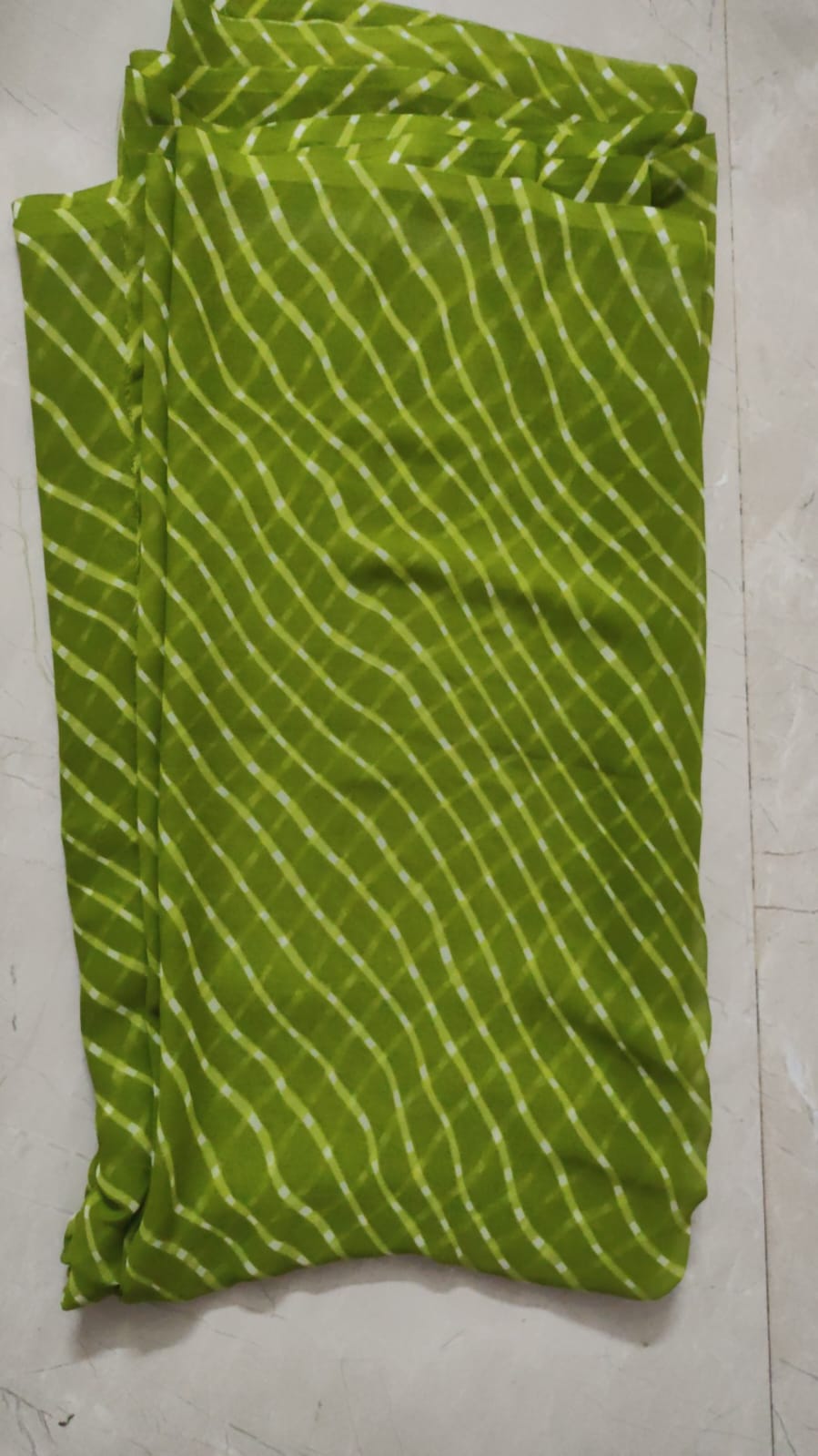 Leheriya Printed Georgette Fabric in Olive Green Colour