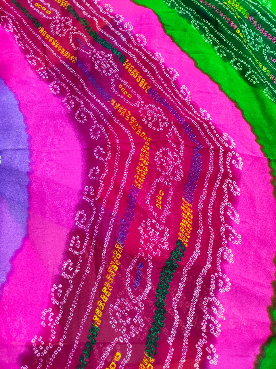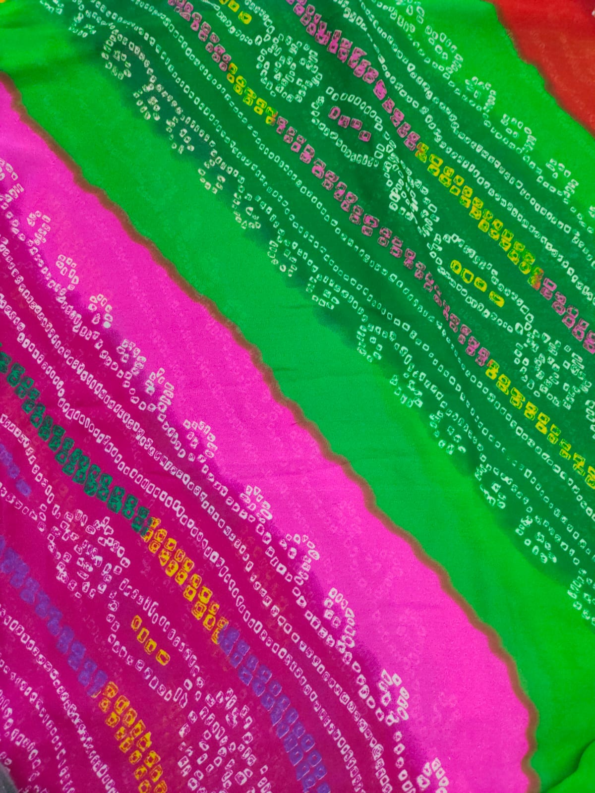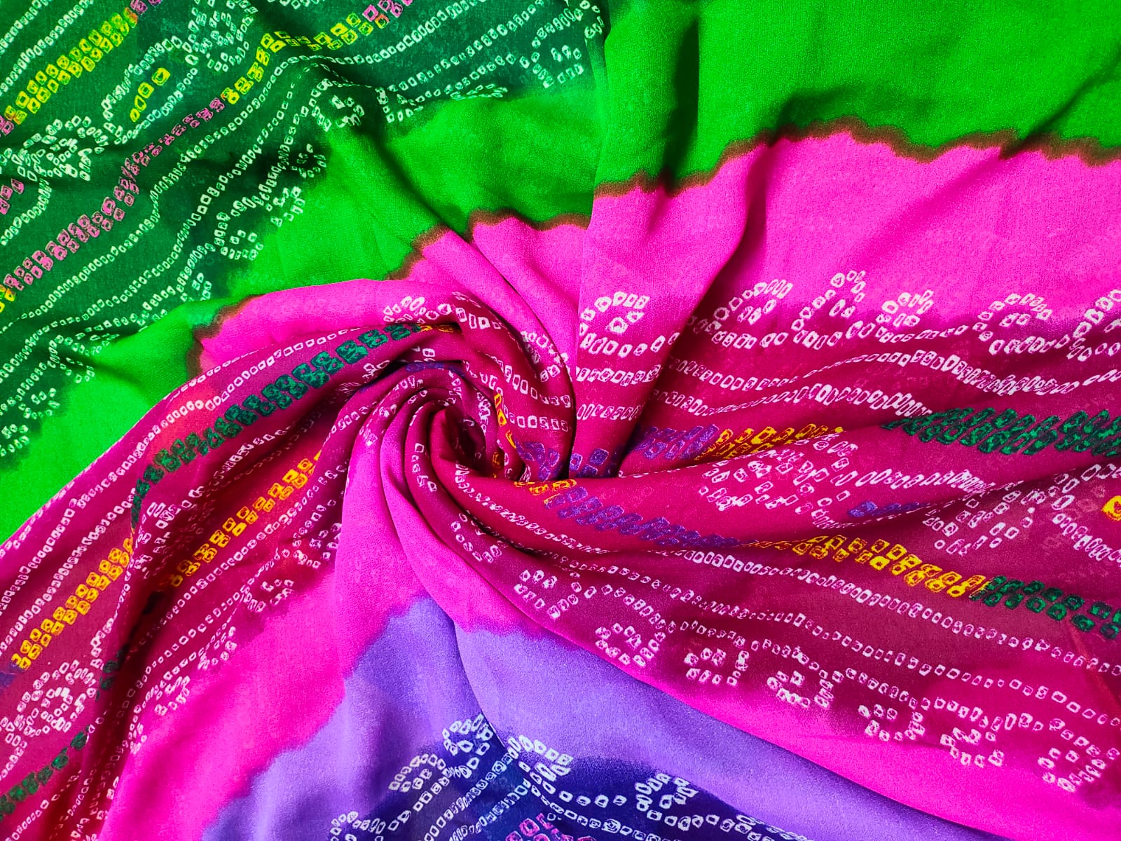 Celebrate timeless tradition with a burst of colours! Our Navrang Bandhani Multi-Colour Georgette Fabric brings together the classic charm of bandhani art with the lightweight elegance of georgette. The vibrant palette seamlessly blends into artistic tie-and-dye patterns, creating a fabric that is festive, graceful, and full of life.