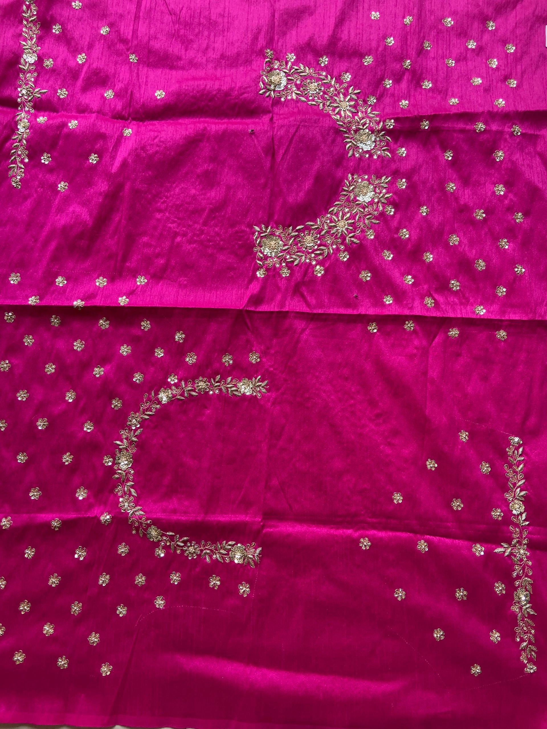 Grace meets craftsmanship in this exquisite pink silk unstitched blouse, adorned with heavy hand embroidery and delicate buti work. Crafted on luxurious silk fabric, the intricate detailing features traditional artistry, perfect for elevating your festive or bridal ensemble. Whether paired with a saree or lehenga, this blouse piece adds richness, texture, and timeless elegance to your look.