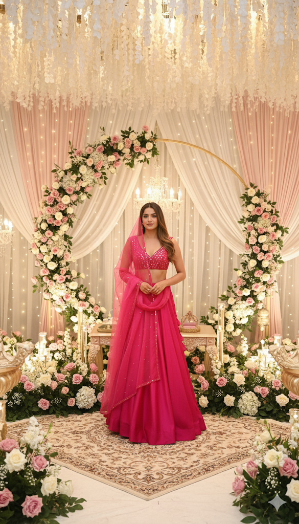 Bold, vibrant, and impossible to ignore—this Hot Pink lehenga is a celebration of joy in fabric form. Designed for the woman who isn’t afraid to shine, this set combines the timeless luxury of satin with the festive sparkle of traditional craft. It feels as regal as it looks, wrapping you in a color that symbolizes energy and passion.