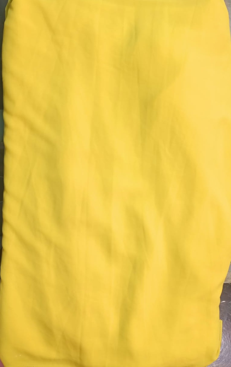 This premium plain georgette fabric is characterized by its striking, high-saturation yellow hue that radiates energy and warmth. The material boasts a signature grainy, crinkled texture that is soft to the touch yet durable enough for intricate tailoring.
