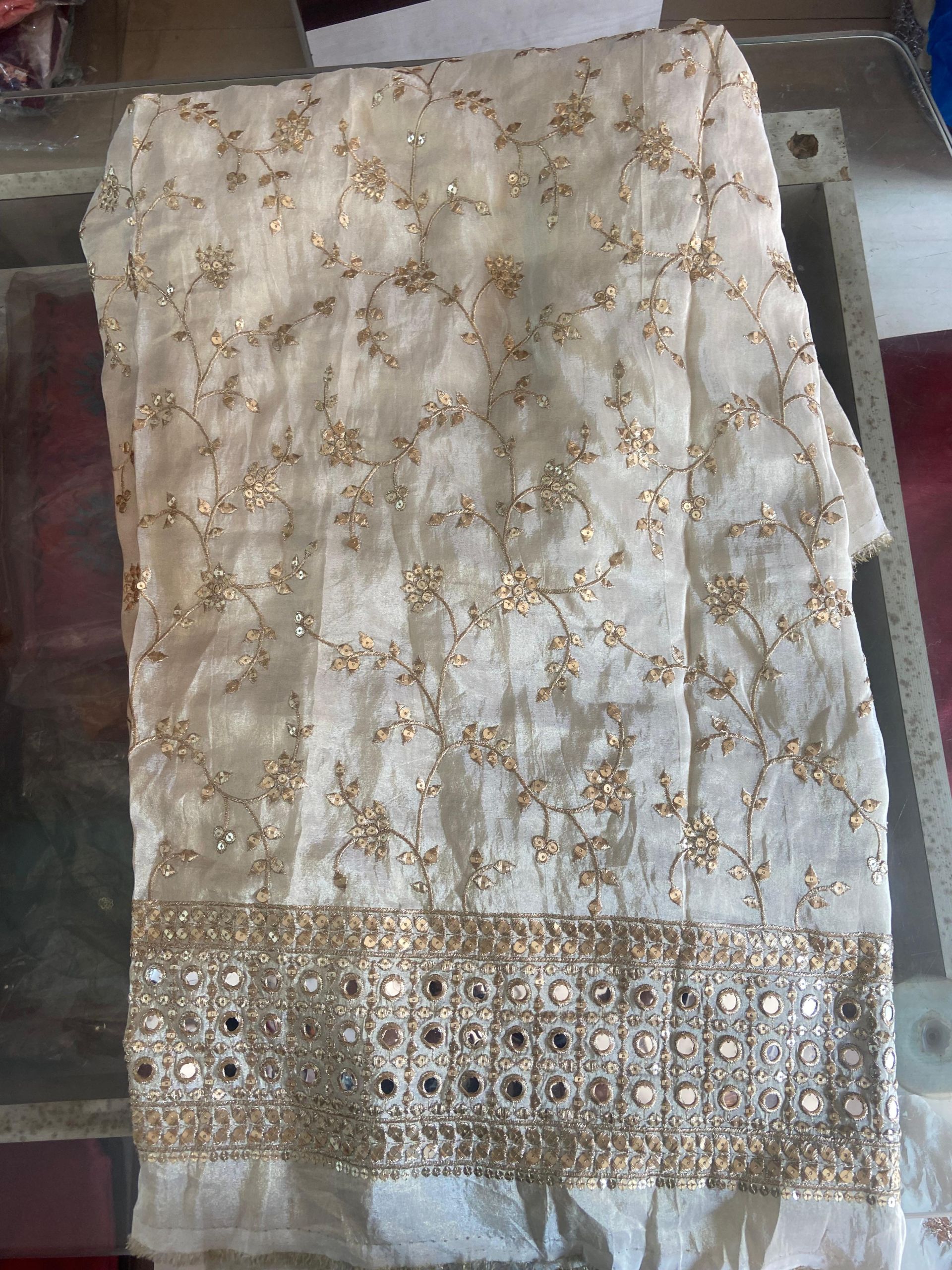 The beauty of this piece lies in its exquisite layering and movement. The crop blouse features heavy, artisanal work that adds a rich texture to the monochromatic palette, while the accompanying cape in Pure Cosmos Tissue Silk provides a subtle, metallic shimmer that catches the air as you walk. Instead of a traditional dupatta, this shimmering cape drapes over your shoulders, adding a touch of modern drama and an effortless, regal flow. The wide-leg plazos are the true statement of the outfit; with a magnificent 5-meter flare, they offer a breathtaking volume that twirls like a dream, yet remains light enough to let you dance through a wedding reception or a festive evening without a second thought.