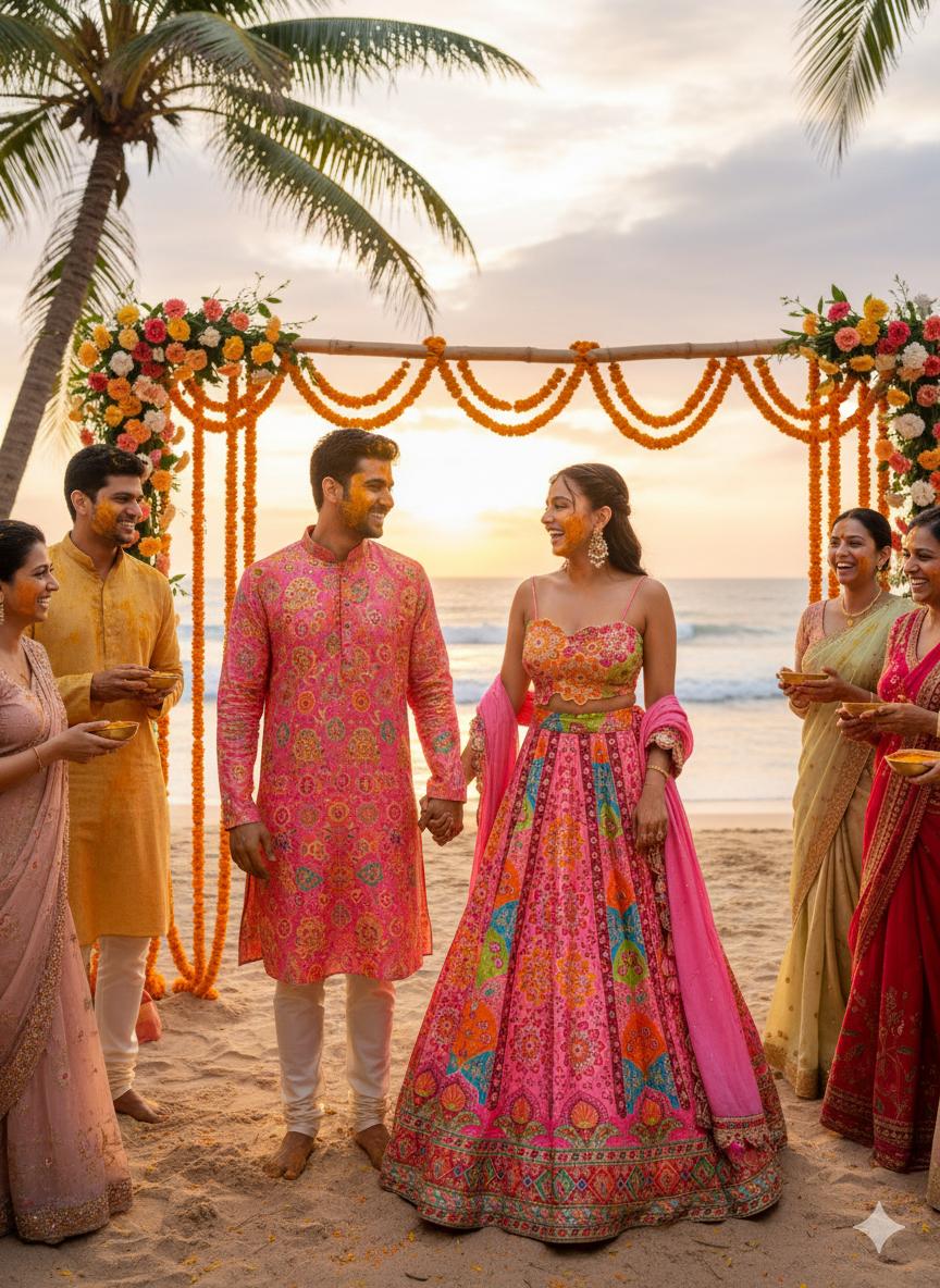 The beauty of this piece lies in its clean lines and thoughtful details. The elegant crop blouse offers a modern silhouette, while the lehenga skirt boasts a heavy five-meter flare that creates a magnificent, sweeping motion as you twirl. We’ve added a delicate border to the skirt and the flowing Georgette dupatta to provide just a hint of traditional definition. For the groom, we’ve kept the aesthetic clean and sophisticated with a matching Pure Crepe kurta and pajama set, intentionally skipping the Bandi to maintain a breezy, contemporary look that perfectly mirrors your own.