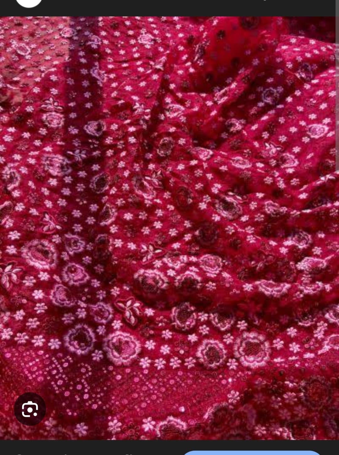 Blouse: A stunning maroon crop top intricately detailed with thread and sequin embroidery that offers a perfect blend of artisanal charm and effortless comfort.